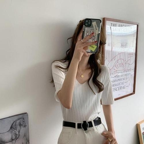 [엄지척]가벼운 여름 원사 시원한 쿨 니트소재 브이넥 반팔 티_19677880_667501