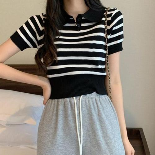 [엄지척]여자 4컬러 여름 시원한 카라 반팔 니트 크롭 티셔츠_19677575_667501