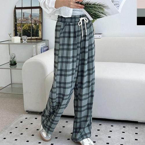 남녀 체크 시원한 와이드 밴딩 팬츠 1P 편한 홈웨어 WFLQNM7
