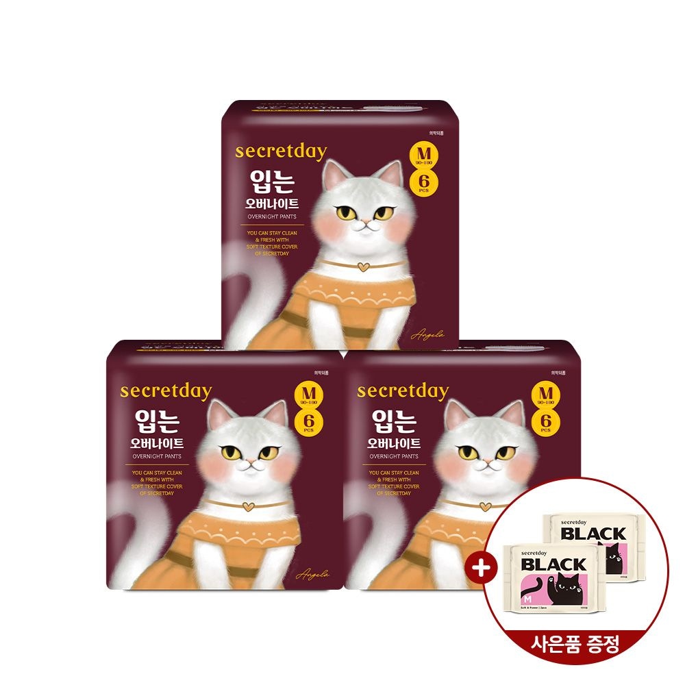 시크릿데이 블랙 입는 오버나이트 소형 6PX3팩