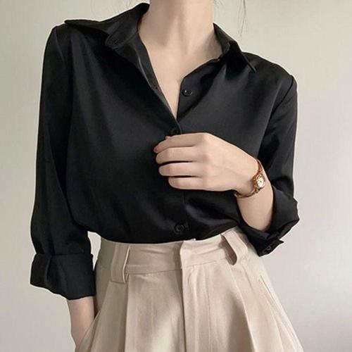 셔츠 스탠다드핏 여자 블라우스 시크한 블랙 정장 WFLQ89A