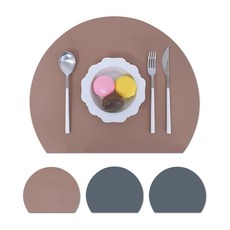 어나더 가죽 식탁매트 반달 메짜루나 4P, 코코아(앞) + 그레이(뒤), 30 x 45 cm, 4개