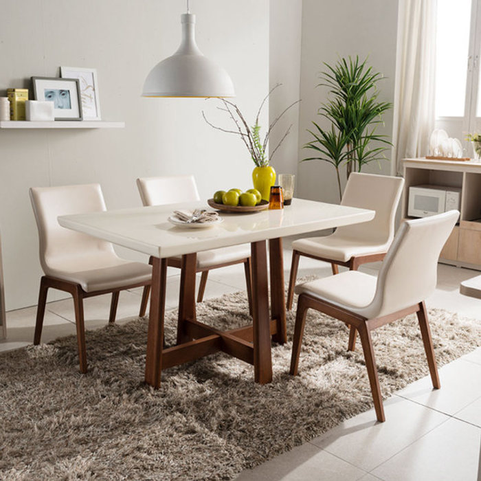 루노바 깔끔한 포세린 식탁 테이블 4인용 원목 대리석 식탁세트 4인용테이블 화이트