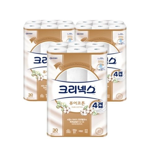 신세계 규격 크리넥스 퓨어코튼 도톰한 4겹 아쿠아 프레시 25m*30롤[3팩]
