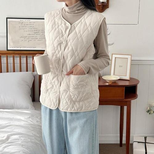 은창]인사이드 메이즈 패딩 조끼 여성 봄 가을 겨울 보온 사무실 실내 오버핏 베스트 상의 여자 단추 패딩