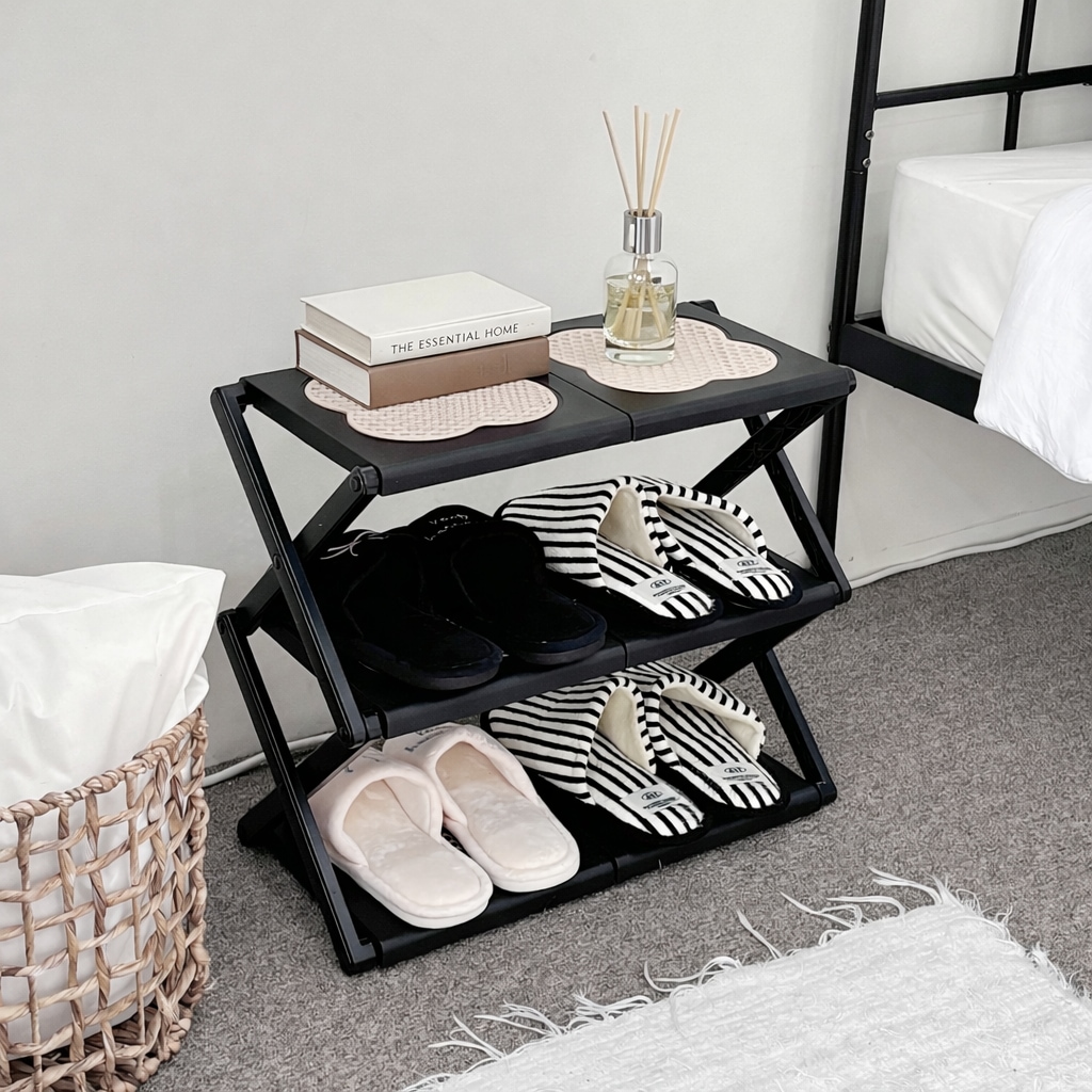 클로버쉐입 접이식 신발정리대 현관 실내화 신발장 3단 4단