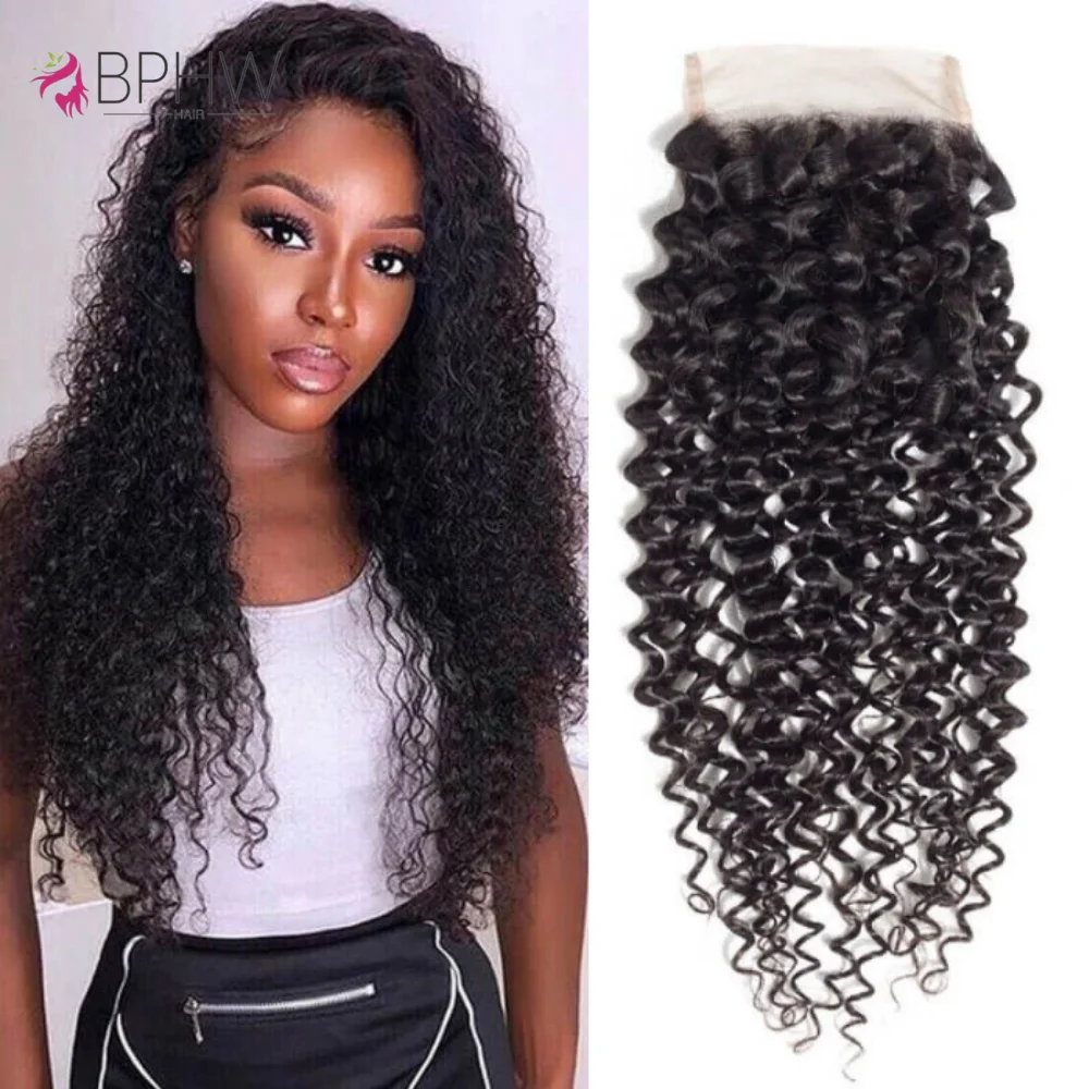 곱슬곱슬한 레이스 프론탈 클로저, 4x4 레이스 클로저만, 브라질 레미 헤어, 미리 뽑은 100% 인모 곱슬곱슬한 레이스 클로저