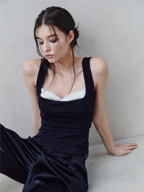 [리임] 실크 레이스 란제리 탑 - 블랙 [2컬러]