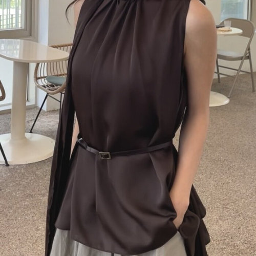 [다잇템][다잇템] 여성 실키 새틴 U넥 슬리브리스 무지컬러 블라우스_20570192_588872