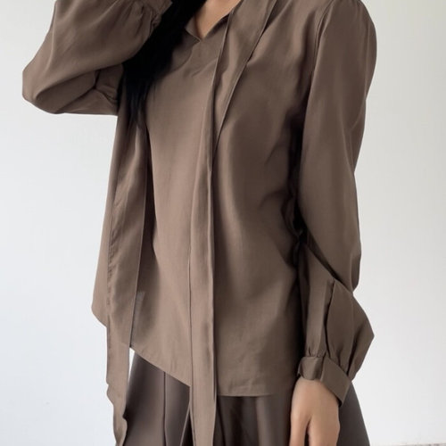 |KSH3A2C|드레이퍼리 롱타이 봄출근룩 카울넥 실키블라우스