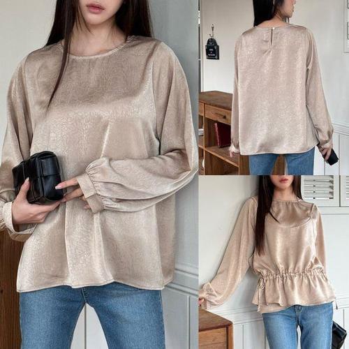 피어니스트 실키 펄 퍼프 소매 슬리브 라운드 블라우스