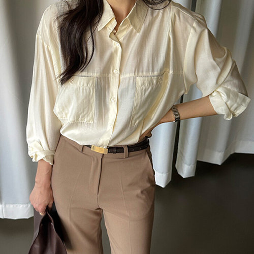 더클립 / 멜로우 포켓 실키 셔츠 블라우스