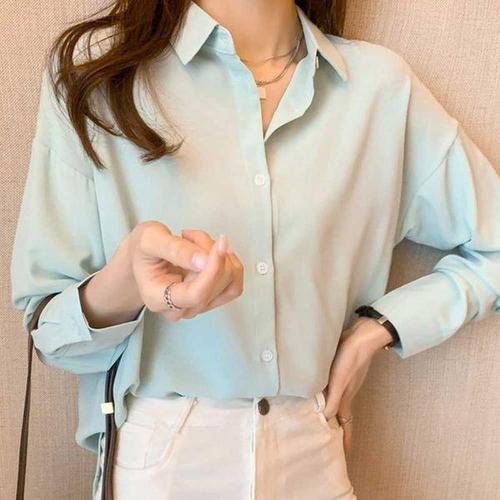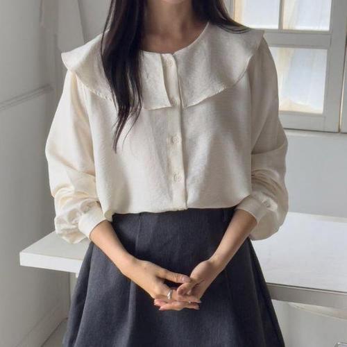 [신상오픈런]여성 심플 컬러 코튼 루즈핏 클래식 블라우스