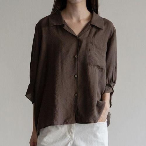[샵앤]여성 카라넥 정장 루즈핏 무지 심플 데일리 블라우스 셔츠 WNW-WSH-12171-브라운