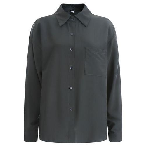 [샵앤]여성 카라넥 정장 루즈핏 무지 심플 데일리 블라우스 셔츠 WNW-WSH-12171-차콜
