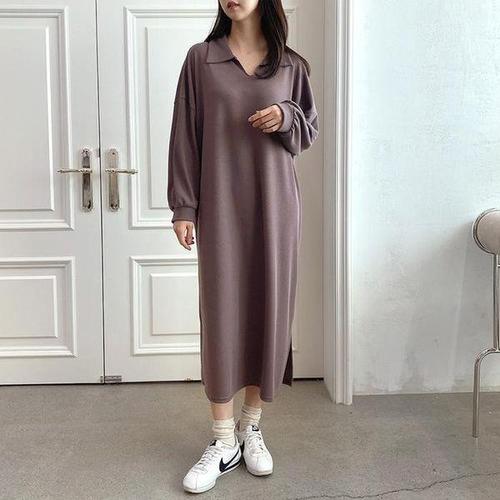 [완벽핏/스트랩O] 심플 카라 롱 셔츠 원피스