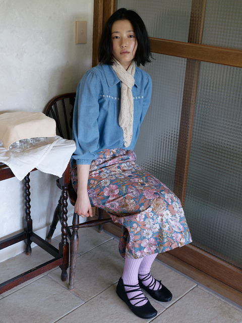 [Thursday Island] 자수 카라 데님 블라우스(T234MBL633W)