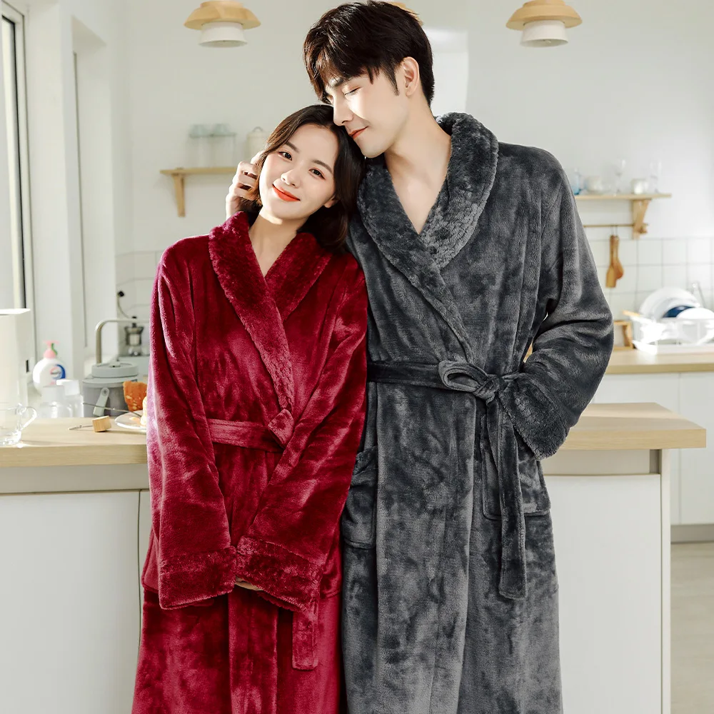 가을 성인 목욕 가운 새시 남성과 여성을위한 v 넥 가운 잠옷 커플 가운 주머니 긴 소매 패션 잠옷