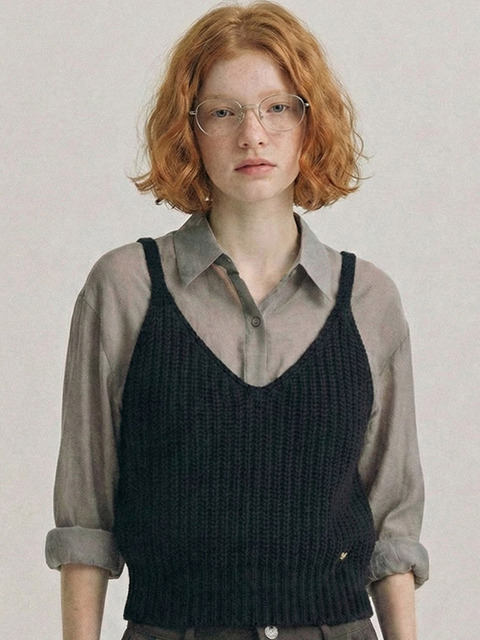 [옷자락]여자 브라운 블랙 크롭 아가인 패턴 니트 조끼