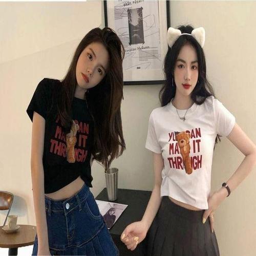 [셀러허브_여성트랜드패션]여자 티셔츠 반팔 슬림핏 곰돌이 크롭티 베이비