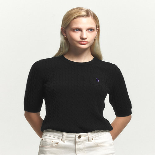 헤지스 여성 [클리어런스][울100] 블랙 베이비 케이블 라운드넥 반소매 스웨터 (HSSW4CC73BK)