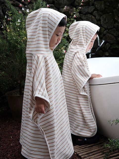 빠른 물기 흡수와 연약한 피부에 안전한 후드형 유아동 비치타올