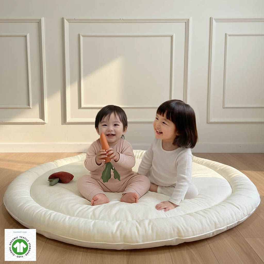 M4U 아기 유아 100수 누빔 원형러그 신생아 놀이방 거실 패드 분리형