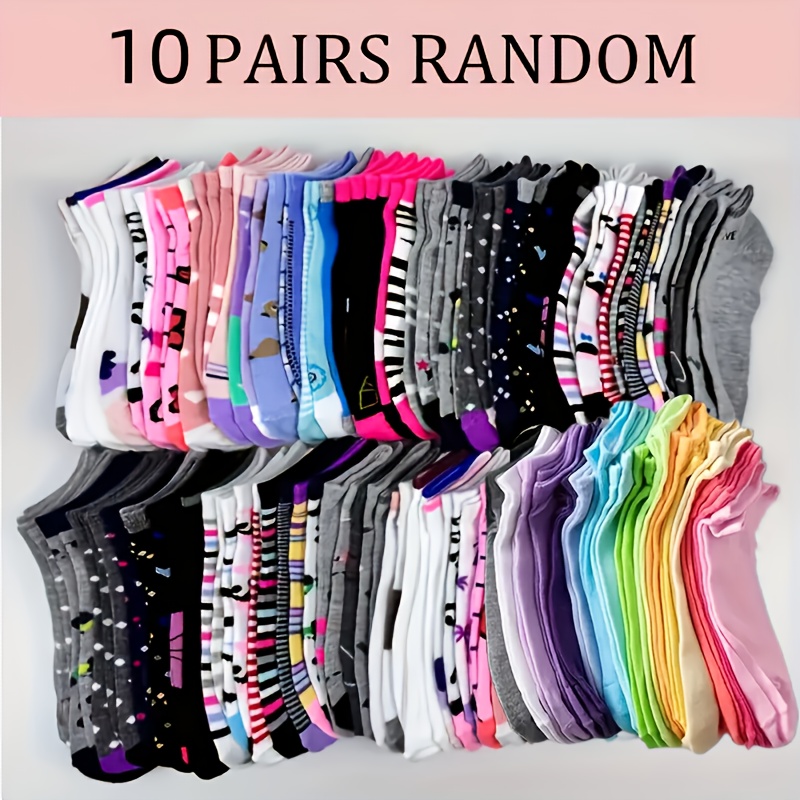 TEMU 10켤레/20켤레 랜덤 컬러 만화 낙서 패턴 발목 양말, 편안하고 통기성 좋은 숏 삭스, 여성용 스타킹 및 양말.