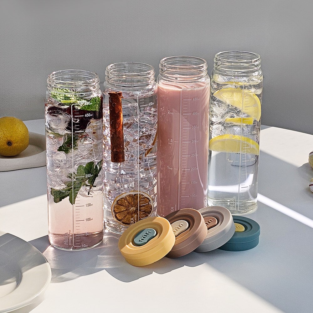 헥사 내열유리 눈금유리병 투톤실리콘캡 4종세트 500ml 아기 음료 우유 주스