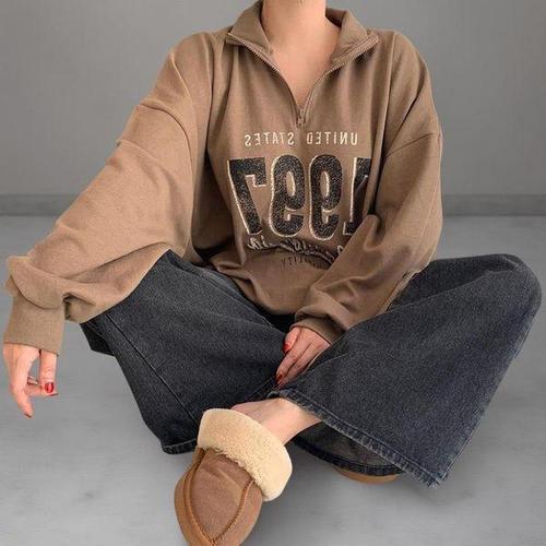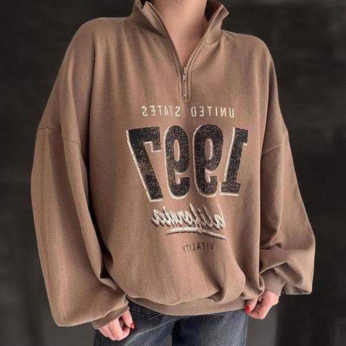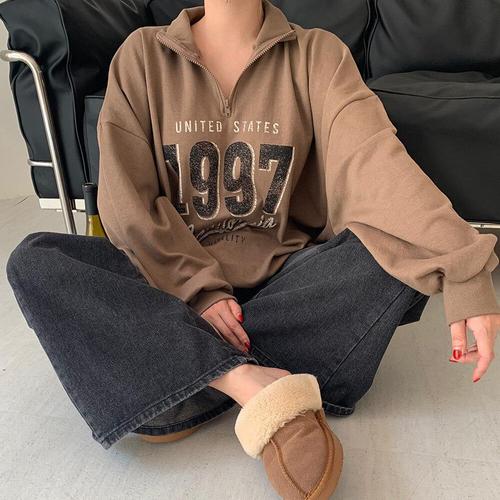 여자 빅 레터링 반집업 오버핏 아노락 맨투맨