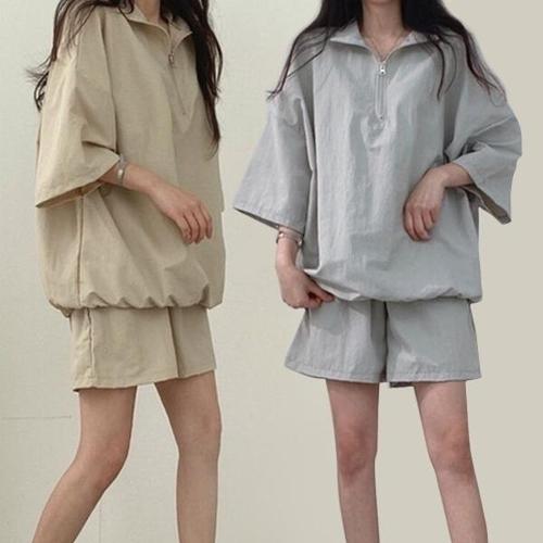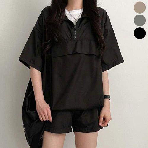 [엄지척]여성 데일리 캐주얼 반집업 반팔 반바지 아노락 세트_19610741_667501