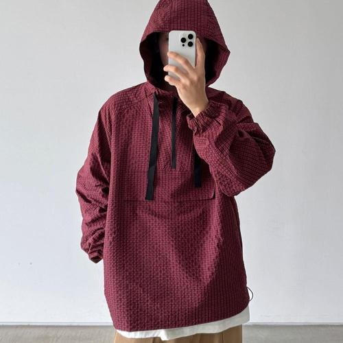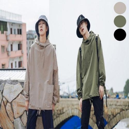 루즈핏 바람막이 아노락 스트링 후드 남성 티셔츠 (44lxd)