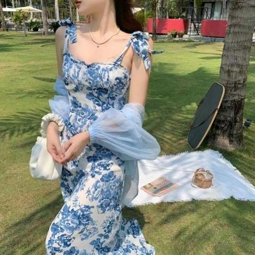 [엄지척]어깨 끈 묶음 꽃무늬 롱 원피스 플라워원피스 여름_19861622_667501