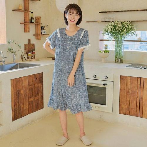 [찌니야]국내제작 여성잠옷 오로라꽃 60수 레이온 반팔원피스잠옷