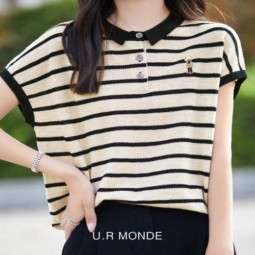[유아몽드]여름 스트라이프 니트티 루즈핏 반팔 티셔츠 단가라