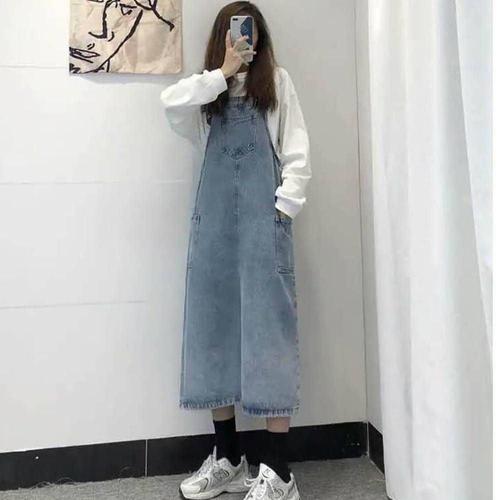 [HYIK1499_4B](내꺼찜) 롱치마 포켓 연청 멜빵 원피스