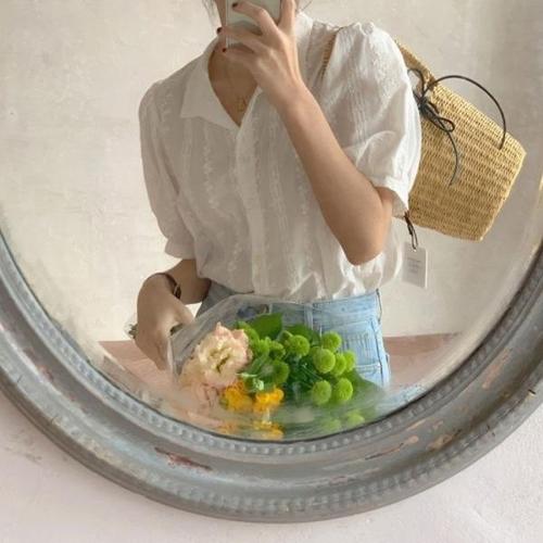 [엄지척]G126297 퍼프 레이스 시스루 블라우스_19660023_667501