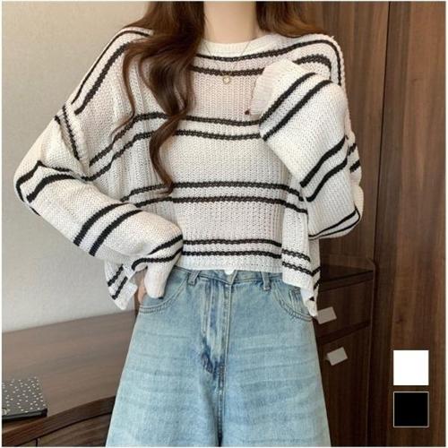 [엄지척]시스루 크롭 입한 인싸템 스트라이프 니트 티셔츠_19681281_667501
