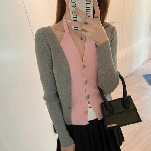 [엄지척]브이넥 원버튼 레이어드룩 니트 간절기아우터 가디건_19799128_667501