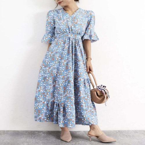 [셀럽하우스]밴딩여름5부허리플라워원피스러플롱원피스 KGMB1496