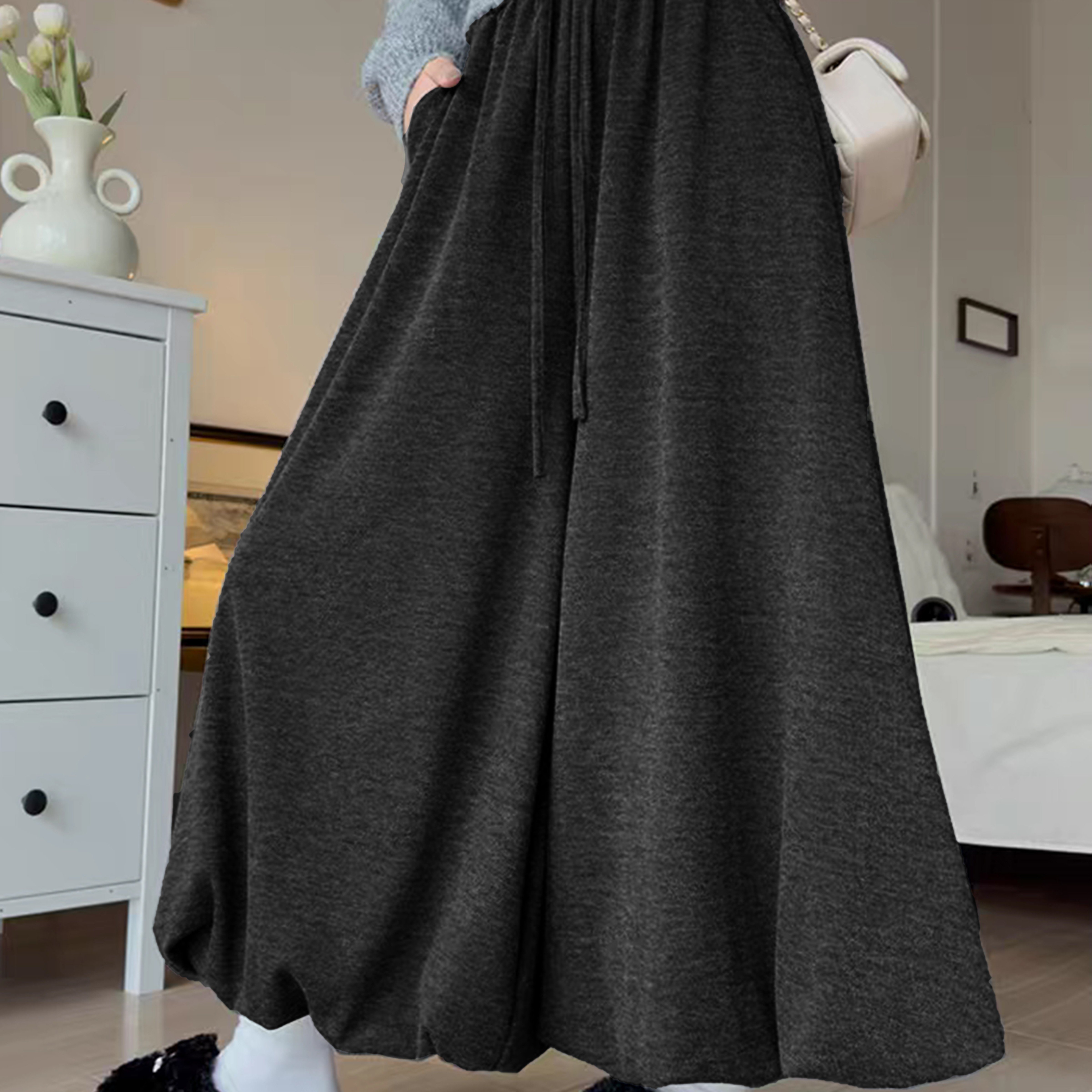 TEMU 1개 Y2K 스타일 여성용 와이드 레그 트라우저 | 꽃잎 모양 다리, 부드러운 원단, 드로스트링이 있는 탄성 허리, 봄 | 가을 | 겨울에 적합, 세탁기 사용 가능, 포멀 및 캐주얼한 모든 행사에 캐주얼하고 다재다능함