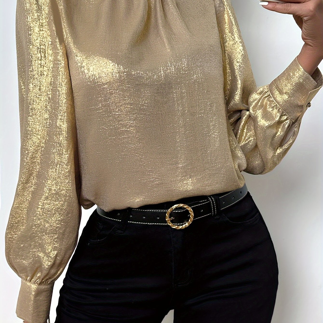 TEMU 여성용 우아한 스탠드 칼라 셔츠 1개 - 봄 시즌용 100% 폴리에스테르 단색 직조 블라우스, 성인용 셔팅