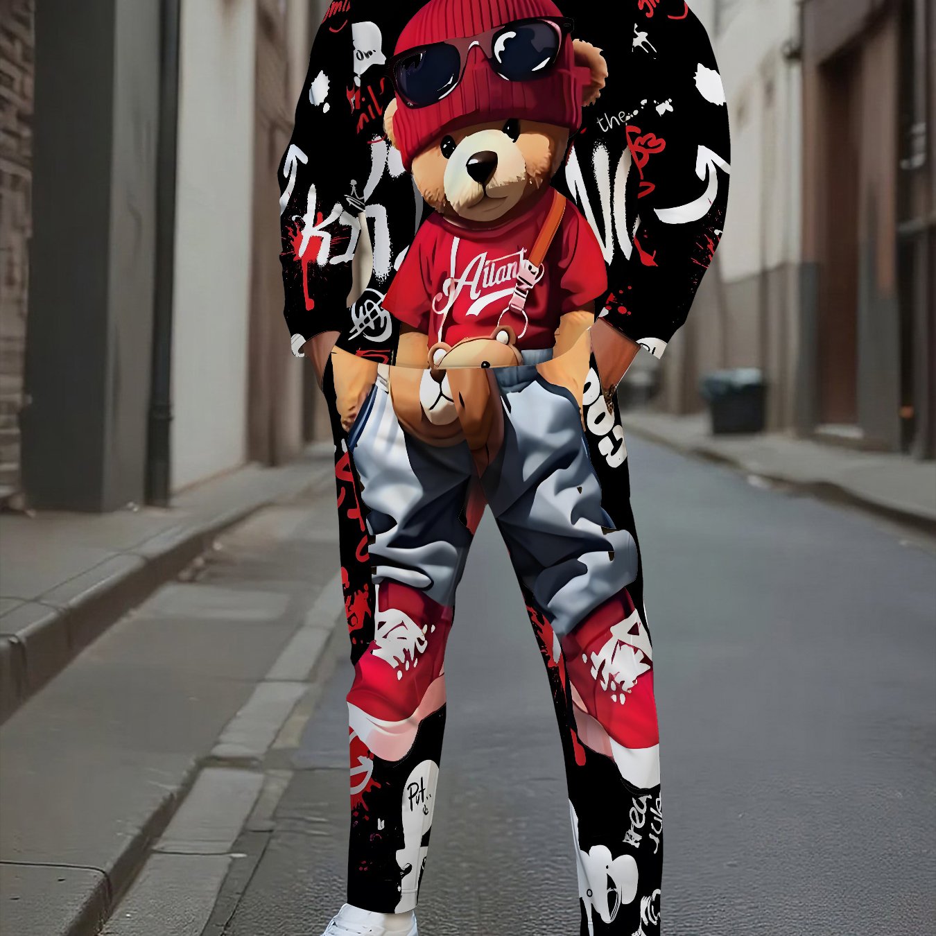 TEMU 남성용 긴팔 스웨트셔츠와 팬츠 세트, 2피스 프린트 크루넥 긴팔 스웨트셔츠와 아웃도어 캐주얼 조거 팬츠 세트, 가을과 겨울용, 크리스마스 선물