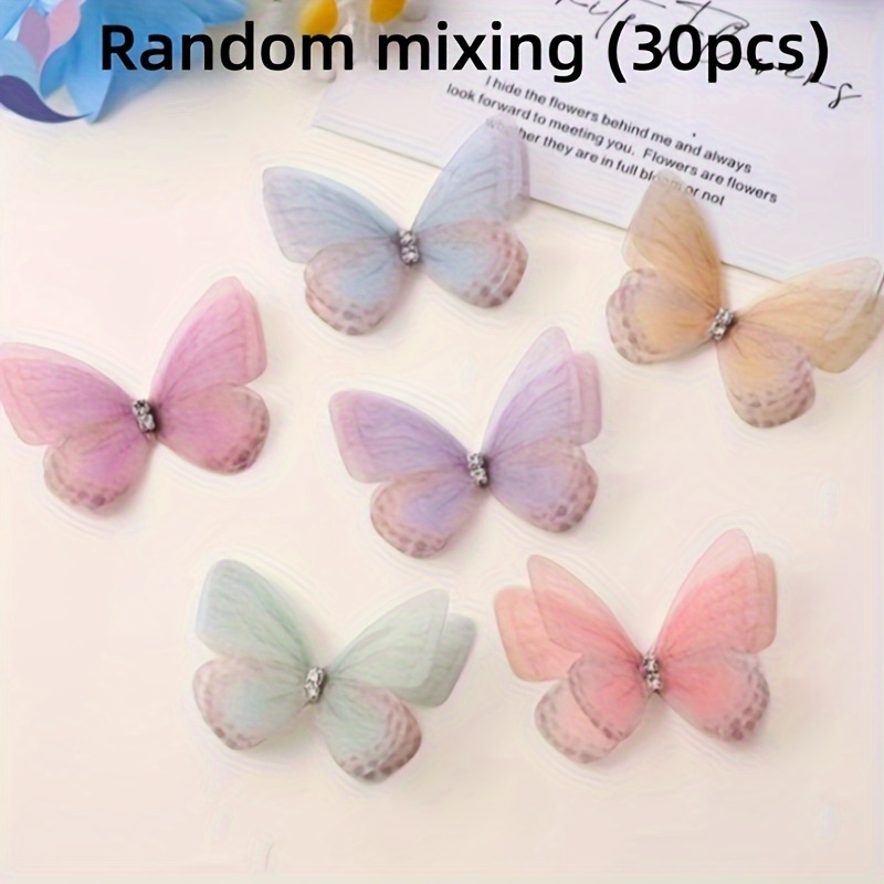 TEMU 30개 세트의 다양한 소프트 핑크 투명 나비 장식, 3D 패브릭 나비 모양으로 디자인되어 헤어 장식, 헤어밴드, 커튼 장식, 꽃다발 장식 및 사진 촬영 소품으로 완벽합니다.