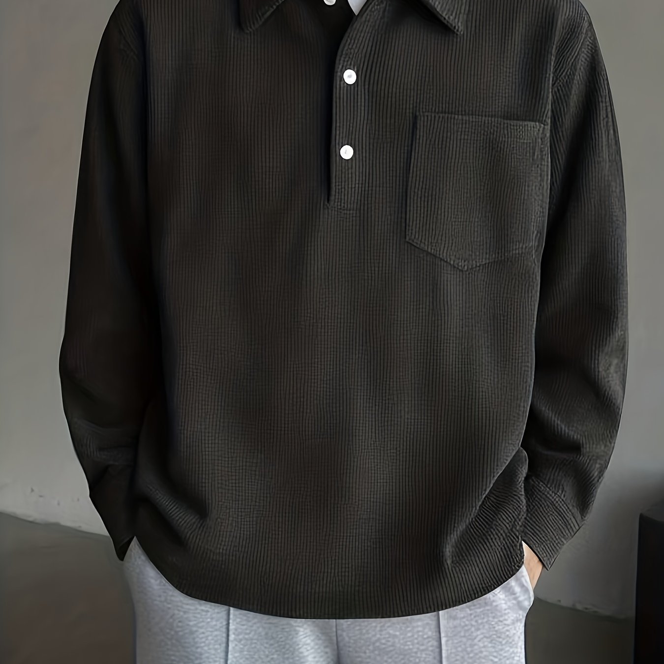 TEMU 남성용 코듀로이 라펠 셔츠 - 레트로 솔리드 컬러 버튼 프론트 칼라 긴팔 스웨터 재킷 스타일 풀오버, 루즈 캐주얼 버튼 (봄/가을용), 세탁기 사용 가능 코듀로이 스웨터 (드라이클리닝 금지)