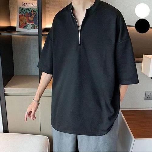 [셀러허브_여성트랜드패션]무지티 기본티셔츠 오버핏 남성티셔츠 차이나카라 남자 반팔 맨투맨 반집업
