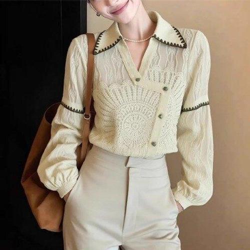 [아리엘스타일]카라니트 레이스니트 버튼니트 크로커카라블라우스