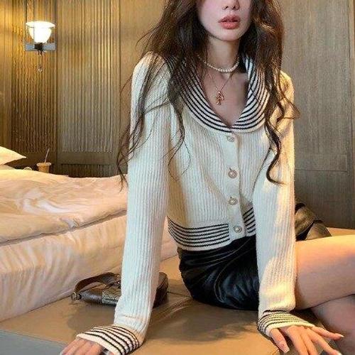 [아리엘스타일]스트라이프니트 골드버튼슬림핏 세일러무드룩 더마린
