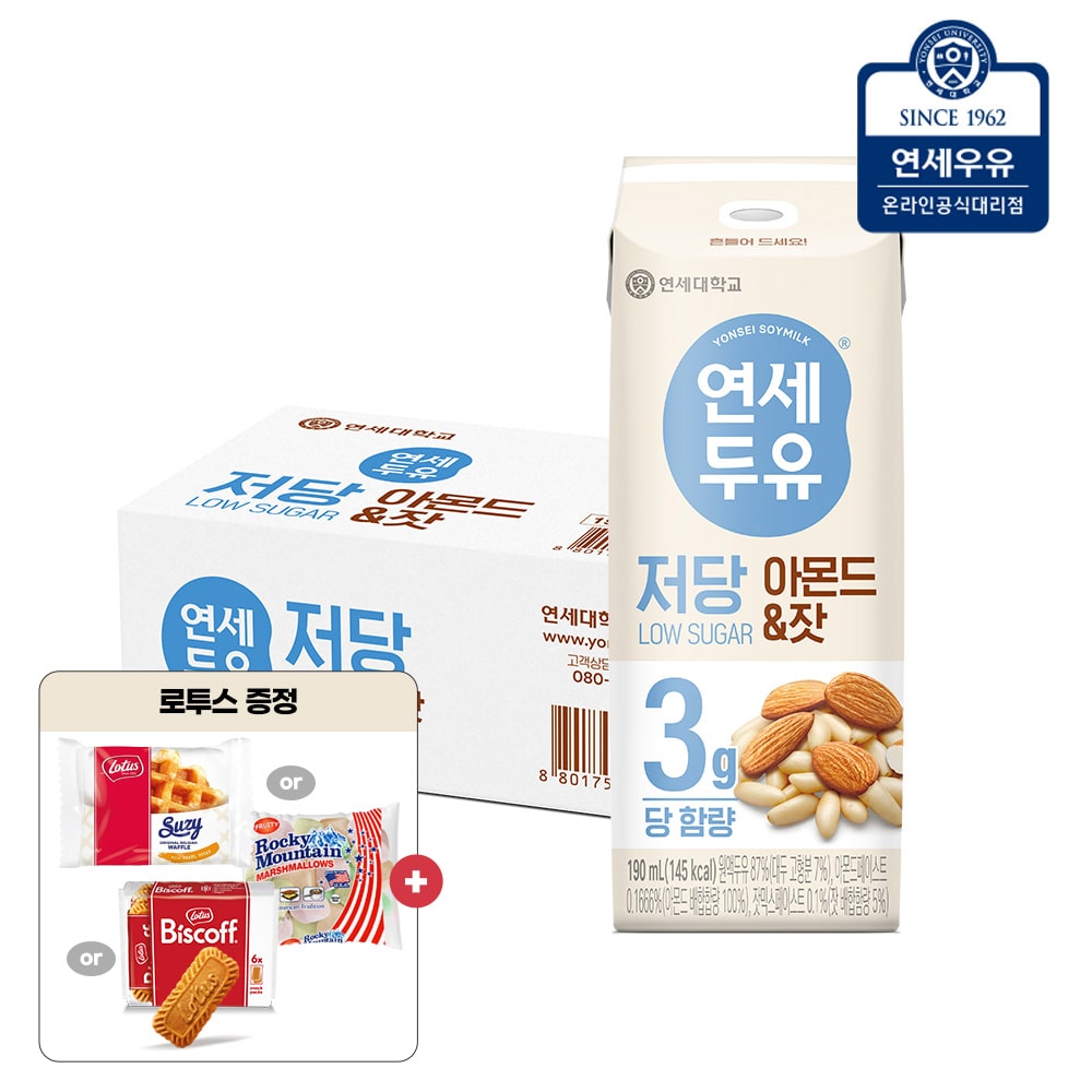 저당 아몬드&잣 두유 190ml 24팩 + 로투스 와플 2개