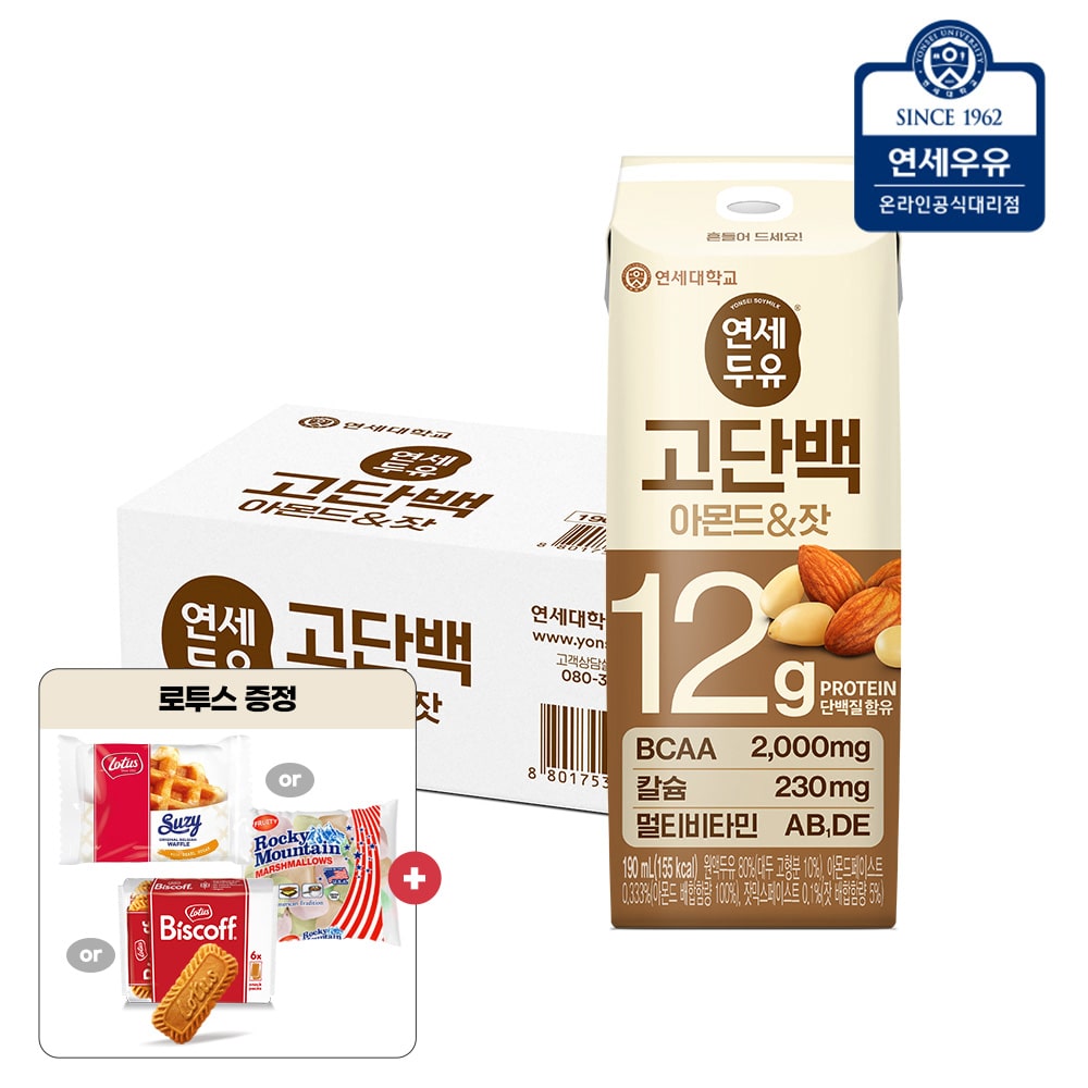 고단백 아몬드&잣 두유 190ml 24팩 + 로투스 와플 2개